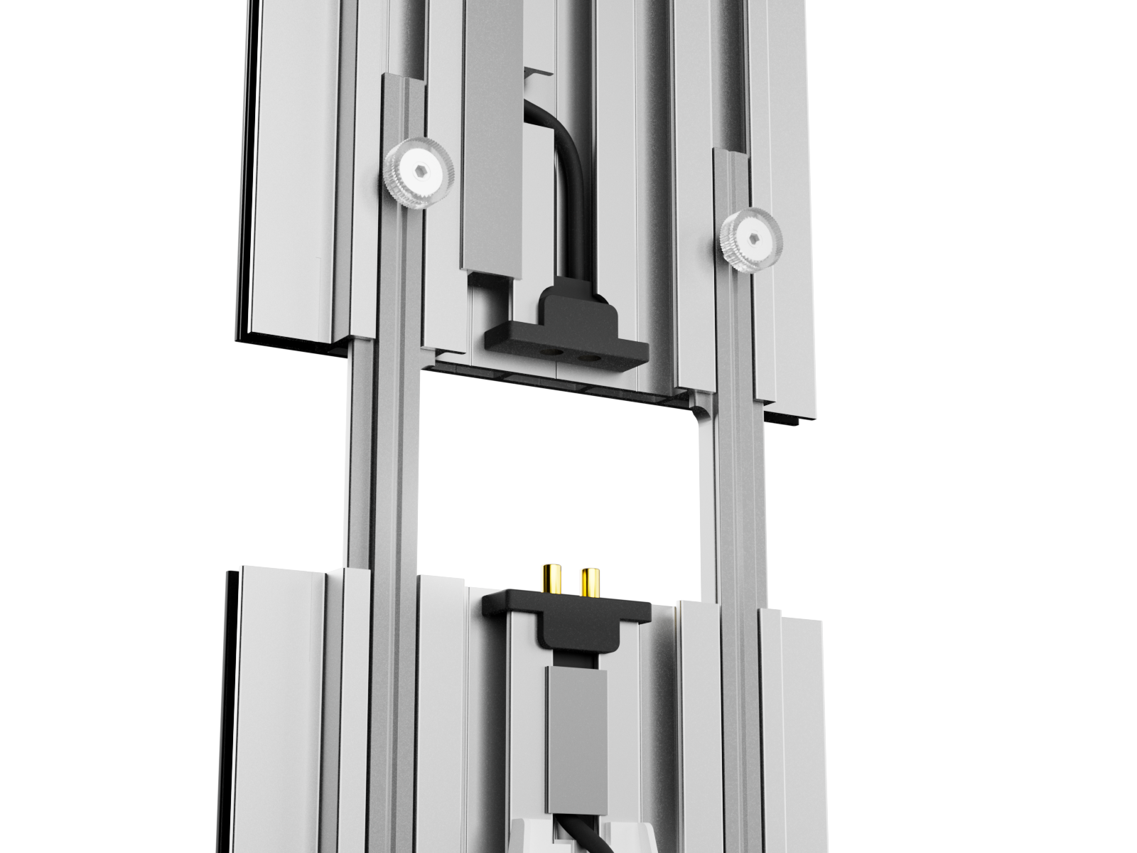 Schwarze, pulverbeschichtete Aluminiumprofile, verstärkte Stahlverbinder sowie werkzeuglose Füße mit patentiertem V-Lock sorgen für höchste Standfestigkeit und eine besonders einfache Montage.
