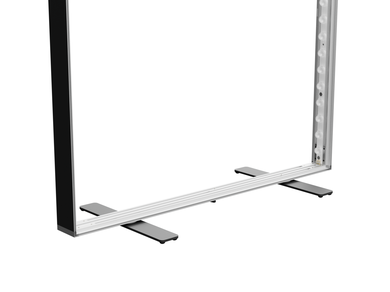 Ein Profil – Profiltiefe 80 mm – wird für dieses Display-Rahmensystem verwendet. LEDUP® besteht aus hochwertigem, UV-beständigem, eloxiertem Aluminium. Das Design und die Form sind schlank und zeitlos elegant.