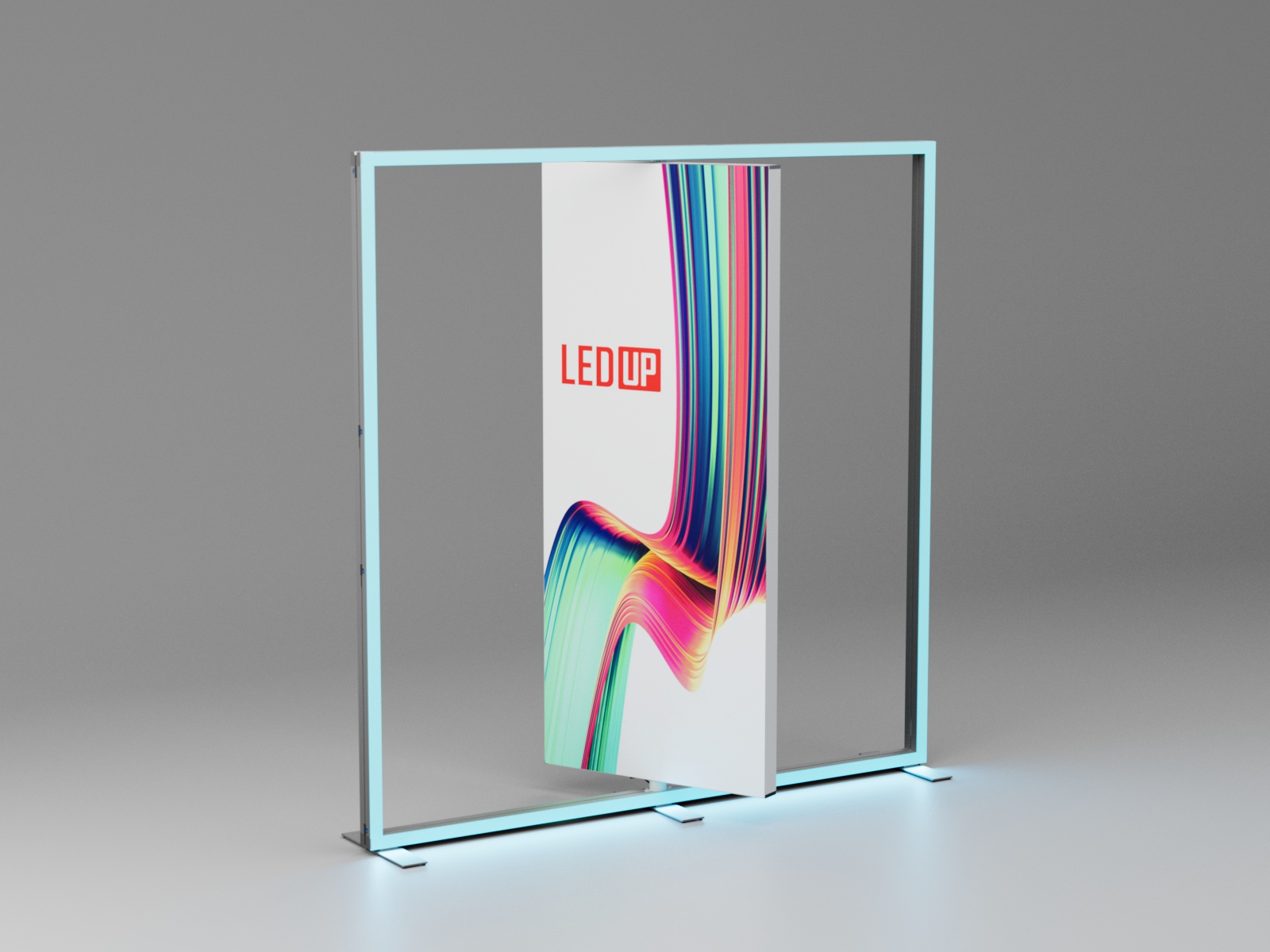 LINEUP rotate ist die neue, drehbare Erweiterung für das LINEUP system und sorgt für Bewegung und doppelte Aufmerksamkeit bei Events und Präsentationen. Das beleuchtete Rotationsmodul misst immer 100 cm in der Breite und ist beidseitig mit Stoff bespannbar – perfekt für wechselnde Werbebotschaften oder doppelseitige Designs. Die Höhe des rotate systems passt sich der Gesamthöhe des LINEUP systems an: