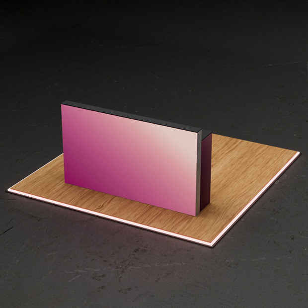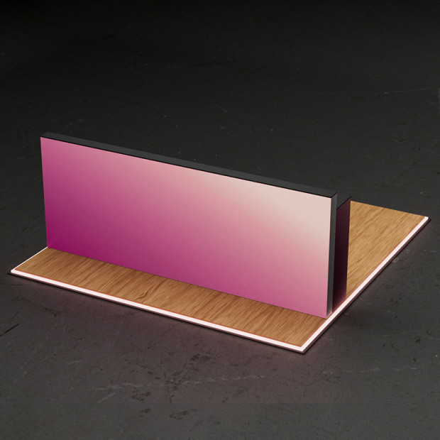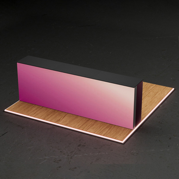 Die beiden vorderen Counter werden über das S-02 Extension Set verbunden und teilen sich eine durchgehende Stoffgrafik, was eine besonders breite, unterbrechungsfreie Leuchtfläche ermöglicht.